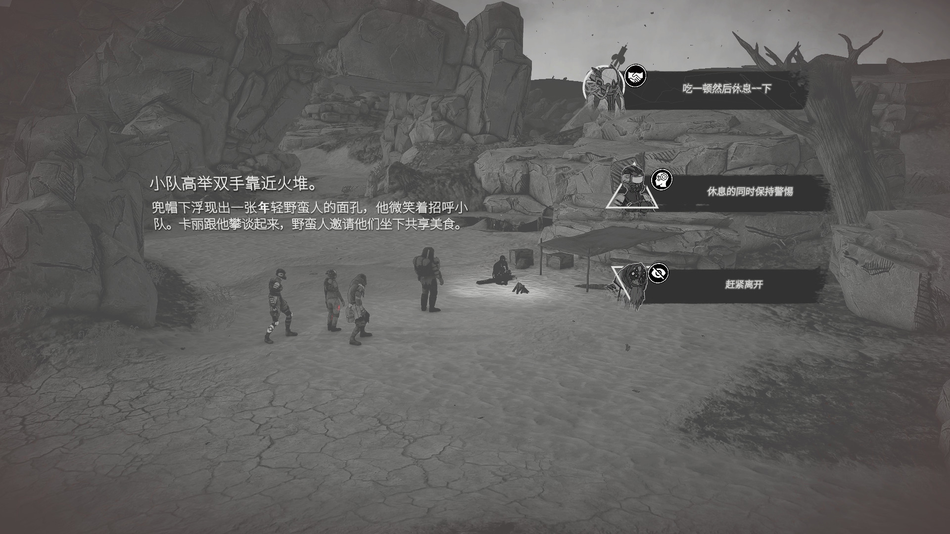 路上遇到陌生人,有幸一起吃东西,但过程没有任何动画,即使几段话结束之后全体回复饱食度。