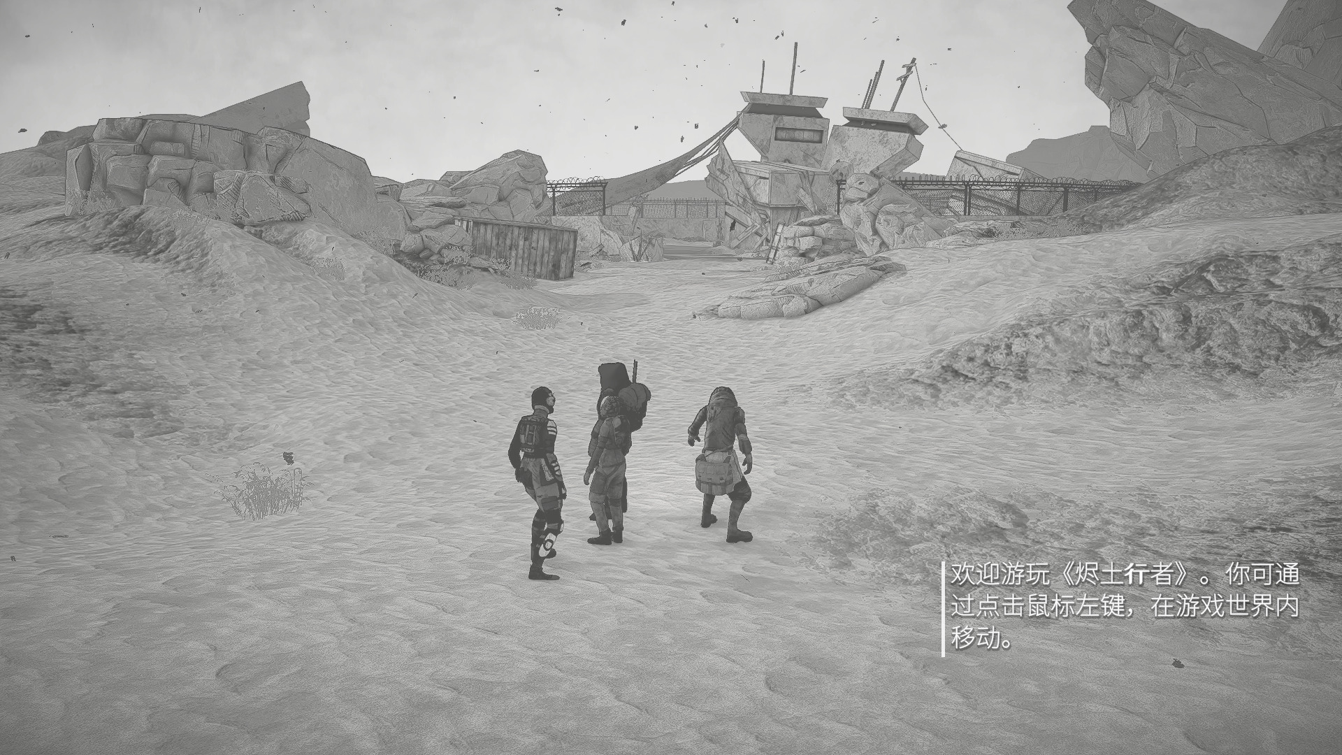 可能是为了突出末日感,本作别出心裁的采用了黑白配色,但也因此导致游戏画面的层次感不强。棱角分明的石块,破旧的集装箱,断壁残垣的世界飞扬着枯黄的落叶看起来如同素描一般。