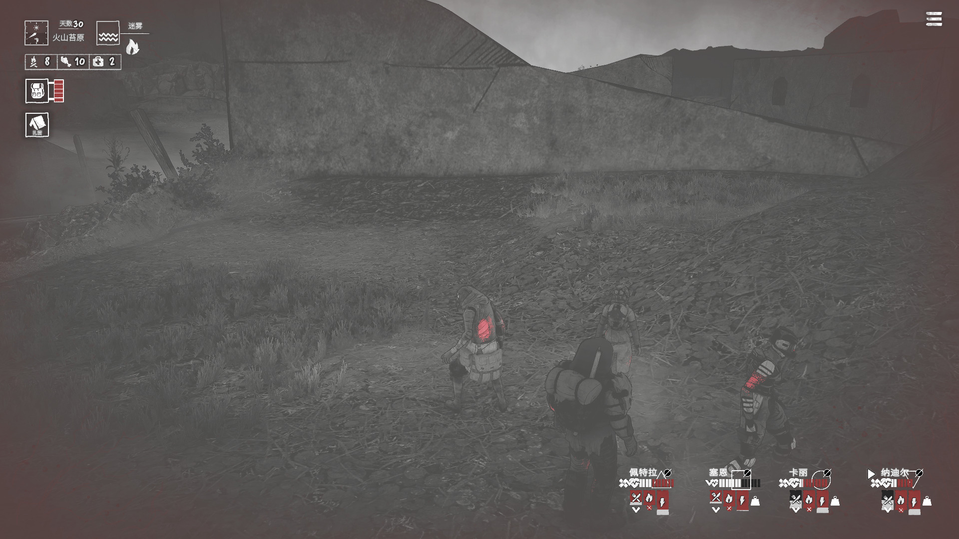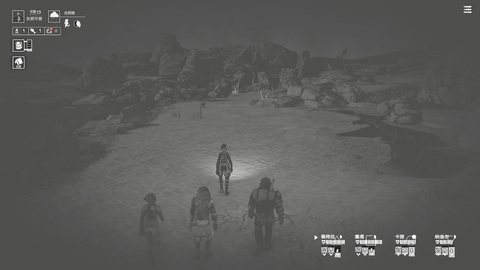 游戏过程中很多时候都会是这样灰蒙蒙的,什么时候会遇到野兽和危险也说不准。