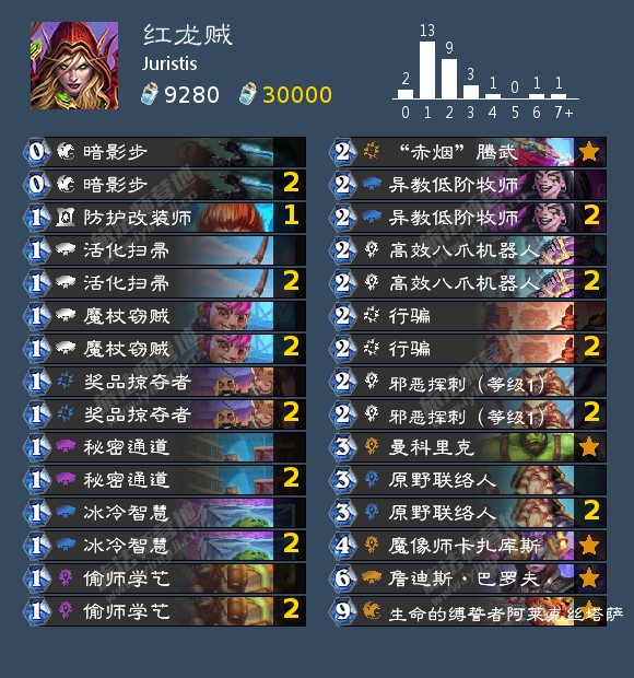 Juristis的一套红龙贼,他使用这套卡组在美服和欧服都打进前十。