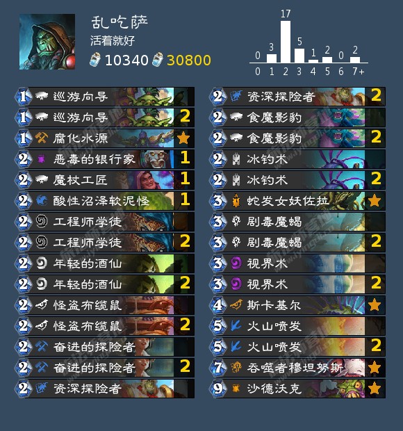 攻略就是起手留334半人马和323历险家。它们都可以轻易生成大量冰冻元素,因为这2张卡的关系卡组里的法术都是冰霜法术,这就导致过牌是真的不行,所以楼主我满编的中立低费过牌。除此之外的卡就是召唤一样有冰冻能力的水元素用的。