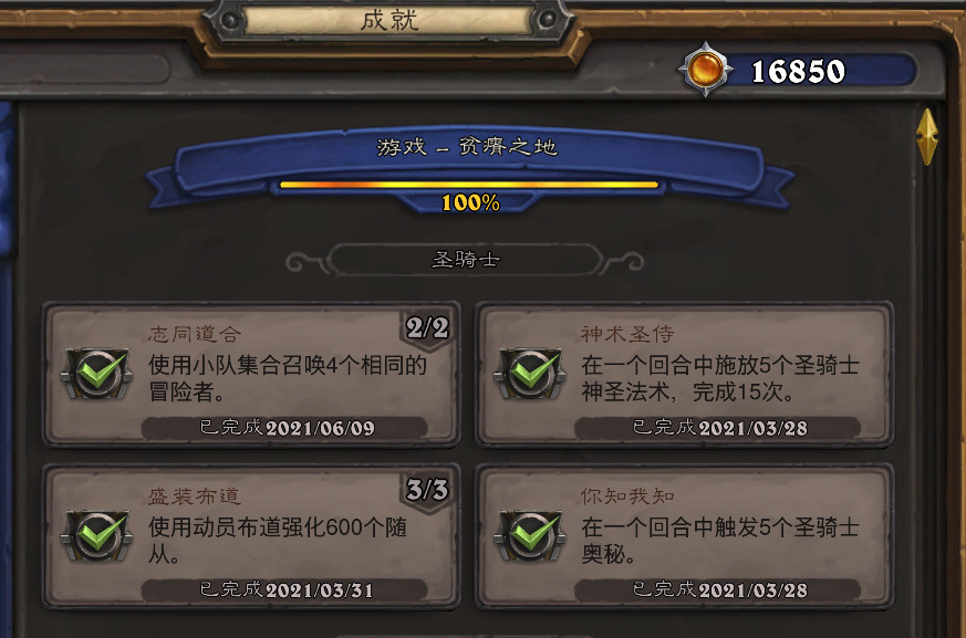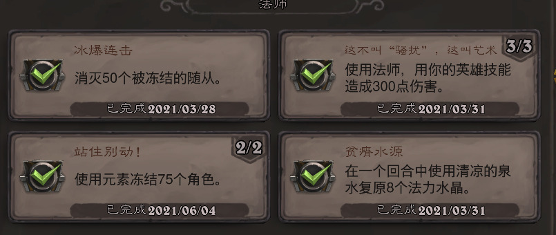 1成就的奖励就是蚊子腿,最高的500经验换算成后面1500经验50金,也就17金。所以为了这点钱不要太纠结,心情好就刷会,心情不好了就果断放弃。毕竟炉石可是专治低血压的神药,大家还是身体要紧。比如这次我的标题快人一步,但即使你们像作者我一样完成了如此多新版本成就,加起来的奖励经验还不如每个星期的每周任务的经验呢。