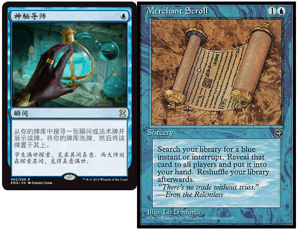 一般来说,能检索瞬间或法术的咒语中,好用的有神秘导师和行商卷轴,现在解出算式也能加入进来,虽然它比行商卷轴多1费,但是能够检索法术。在指挥官里,检索非常重要,解出算式也许会是新的蓝色必带卡。