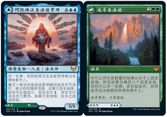 阿凯维沃圣法谕贾琦的魔艺效果能让你用仅仅1费来施放牌库顶的非地咒语,运气好的话能连续施放多张高费法术或瞬间。而如果牌库顶是地则能直接放进场,也不算太亏。