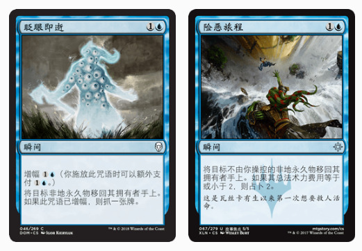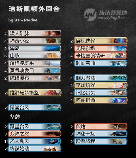 这次洁斯凯额外回合的亮点单卡绝对是这只大蛇颈龙:始潮涅札哈,它在备牌局面对洁斯凯控制和红蓝凤凰时表现优异,但内战时就没有那么强了,因此很有趣的事发生了:最后在决赛会师的两位洁斯凯额外回合牌手,都没有带始潮涅札哈,备牌的那个位置都是低费的回手咒语,John Girardot选择了眨眼即逝/没入狂搅动,Sam Pardee则是能占卜的险恶旅程,这种咒语在内战中回手聚鲨台风和终谋始动衍生物时表现极其优异,也能直接反击掉可以翻出衡鉴的无畏创新:
