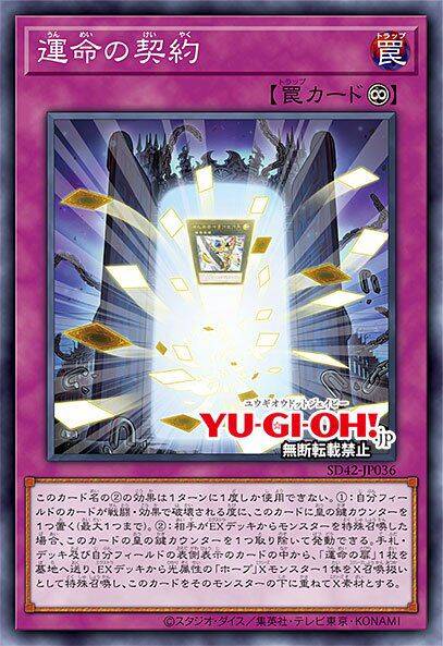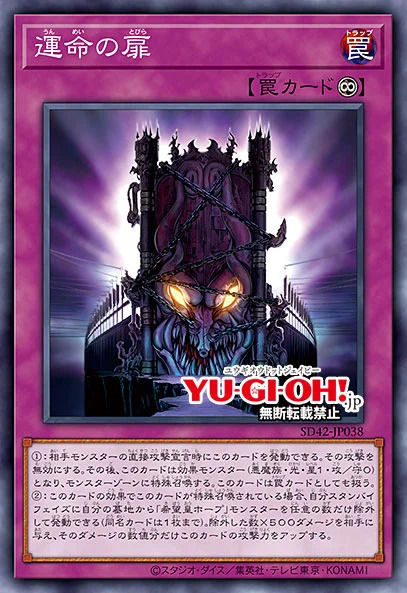 ②:对方从额外卡组把怪兽特殊召唤的场合,把这张卡1个皇之键指示物取除才能发动。从手卡·卡组以及自己场上表侧表示的卡之中,把1张「命运之扉」送去墓地,从额外卡组把1只光属性「霍普」超量怪兽当作超量召唤特殊召唤,这张卡在那只怪兽下面重叠作为超量素材。