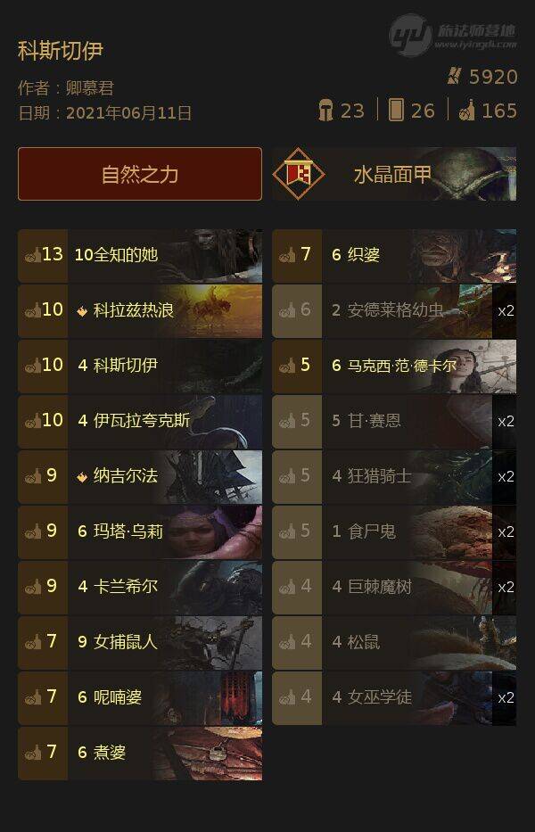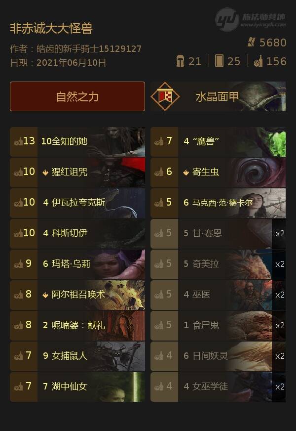 日间妖灵:平平无奇的大点数,可考虑换成5p卡,如此独角兽能稳定拉女巫学徒,但我自己不知怎么改了,希望共同探讨。
