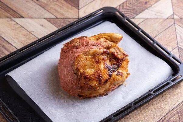 从烤箱中将兽肉取出,涂上步骤 6 的酱汁,再用烤箱以上下火200度,烤10分钟。