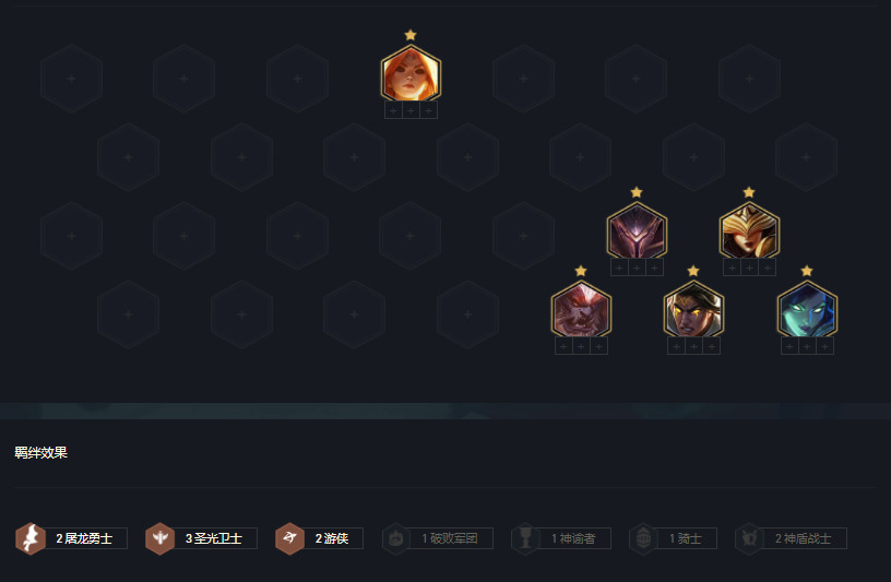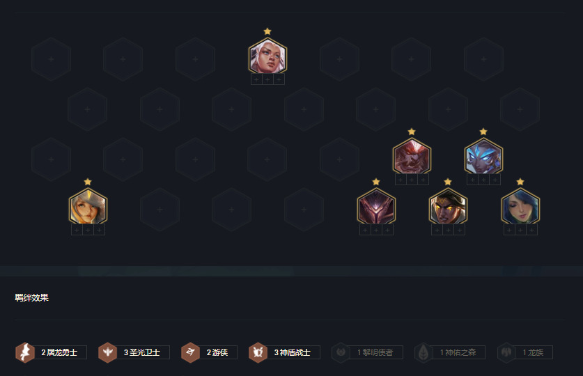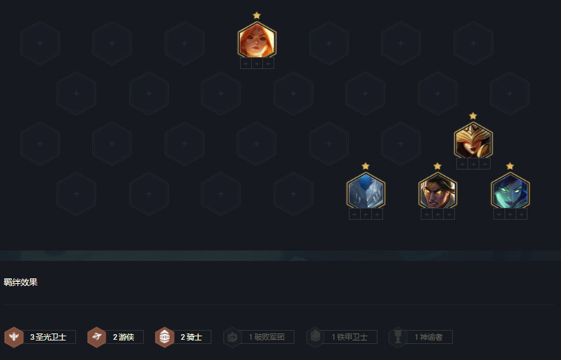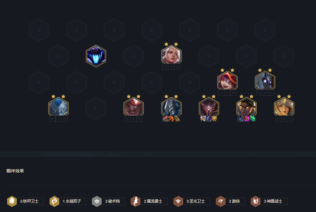 阵容运营关键羁绊:2/3铁甲+3圣光+2游侠+3/4秘术+3神盾。