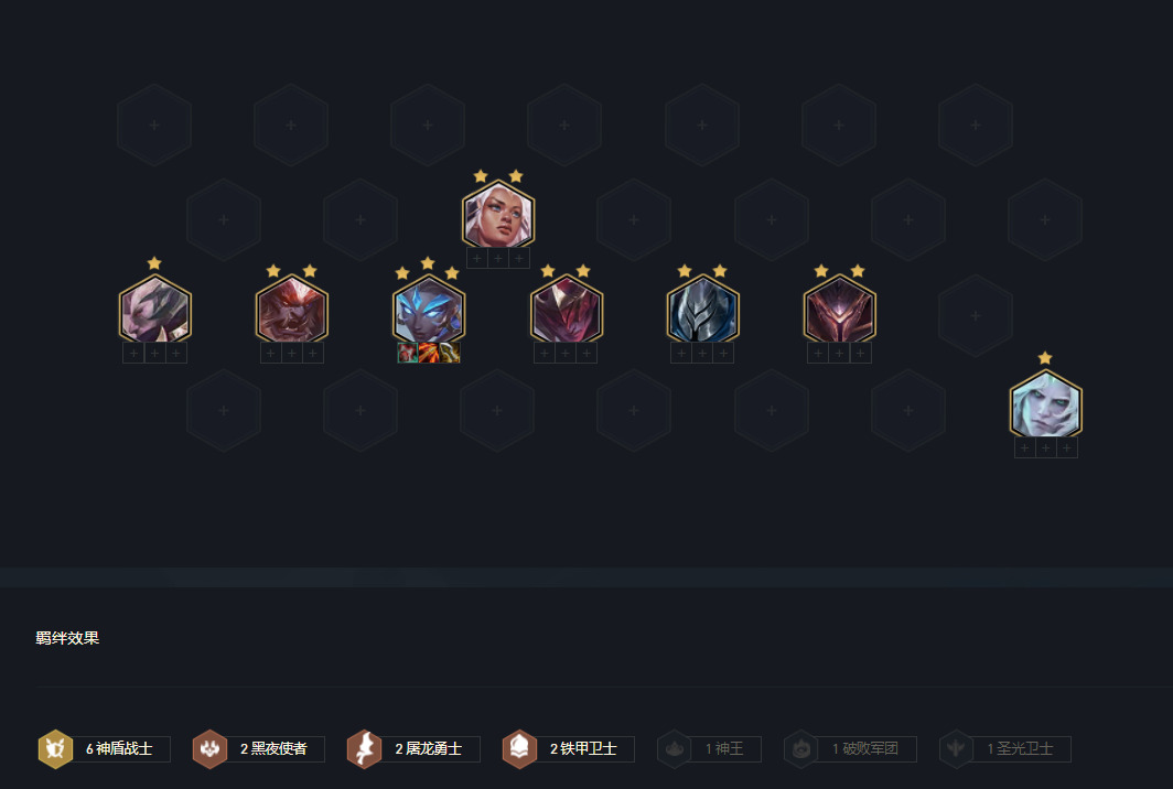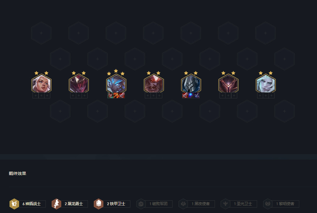 3-2左右拉6人口,如果这时候神盾卡比较胡能凑成6神盾基本,尽量6神盾,差1个神盾棋子也可以适当的小D几下,3阶段除了比较胡的铁**与圣光游侠阵容,其他大部分时候6个1星的神盾也能稳定锁血。