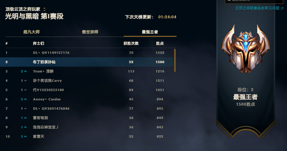 无畏先锋服务器排行第二的玩家补丁奶茶孙仙,云顶排位1500分的大神玩家,摩昂看其战绩,发现了一个很有意思的事。