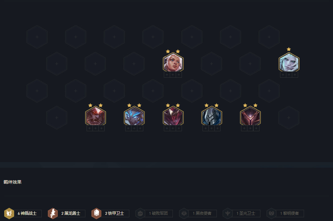 阵容7人口成型,8人口多挂第二个潘森或巨魔或诺手。