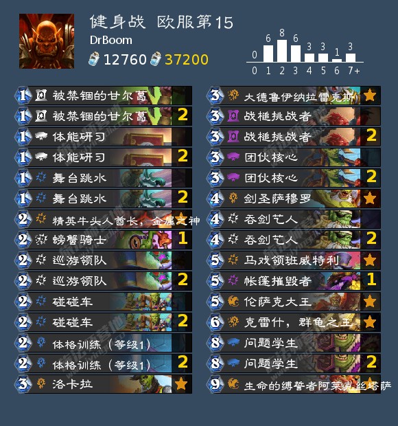 根据HSReplay的数据,热度最高的五套健身战中,恩佐斯,深渊之神的持有回合分别为3.6、3.4、3.5、3.5、3.4,对于没有什么衍生能力和抽牌能力的健身战来说很可能导致卡手的问题;而且这样一个憋了好几回合的“大招”,对应的打出胜率却只有48.9%、47%、47.4%、47.1%、50.7%;作为对比,全分段胜率更低的恩佐斯牧中的恩佐斯,深渊之神的打出胜率普遍在六成左右,而且都是卡组中打出胜率数一数二高的单卡。
