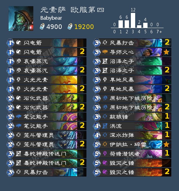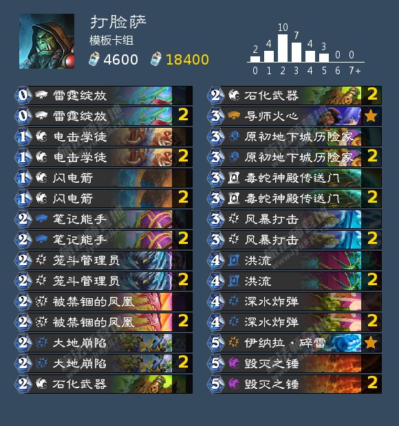 -闪电箭*2、毒蛇神殿传送门*2、沼泽之子*2、敲狼锤、洪流、深水炸弹;