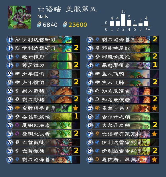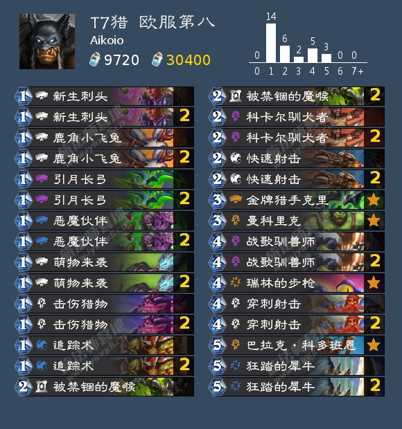-少年惯偷*2、魔钢处决者*2、鱼人飞骑*2、恩佐斯,深渊之神;+引月长弓*2、魔杖工匠*2、召唤咒符*2、大德鲁伊纳拉雷克斯