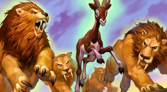保镖德回来了!凭借其过硬的进攻资源量、中期压制力以及护脸能力,保镖德在理论上打牧师以及两种主流DH都是优势(虽然我相信牧师玩家不会同意这一点),和针对少AOE卡组的超生德以及针对吸血瞎的超凡德一样,扮演了抓环境卡组的角色。但是与两个抓环境前辈类似,保镖德同样依赖牌序,自然研习、野性成长、过度生长素质三连的时候吊打一切,前期手握对八对九的时候则又变成了人见人欺的小可怜;为了缓解这一问题,目前常见的保镖德都会考虑携带剑圣萨穆罗,但是在实战中,这张牌还是比较依赖配合,如果没有优胜劣汰过的话,其实大概率是一个全场A1,主要还是一个补刀的角色;当然了,你也可以在自然研习中找到一些buff(标准德鲁伊现在一共36个法术,其中3费以下的buff有5个,如果羁术够高是绝对找得到的),结合德鲁伊本身的费用压制,在8费的强势期来临前起到控场的作用。