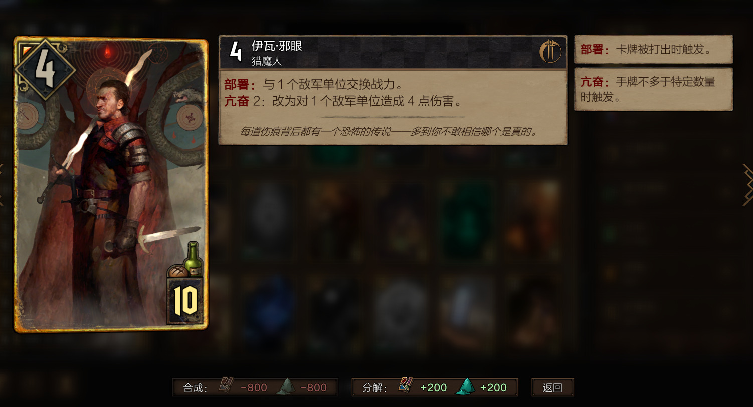 如此强力的起手combo为何只在爆牌中见到呢?因为斯崔葛布9P5点的可怜身材,和除了在先手起手能用,之后就无法配合,更何况斯崔葛布的抽卡效果,如果是单位牌还会把战力直接变为1点。