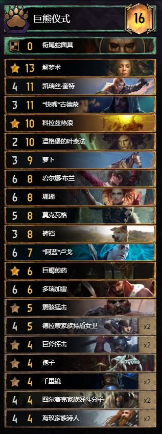 这套弃牌群岛与上赛季的不同是,去掉了8P莫克瓦格和7P格得(真舍不得这张),加入了更针对环境的巨熊和锁。
