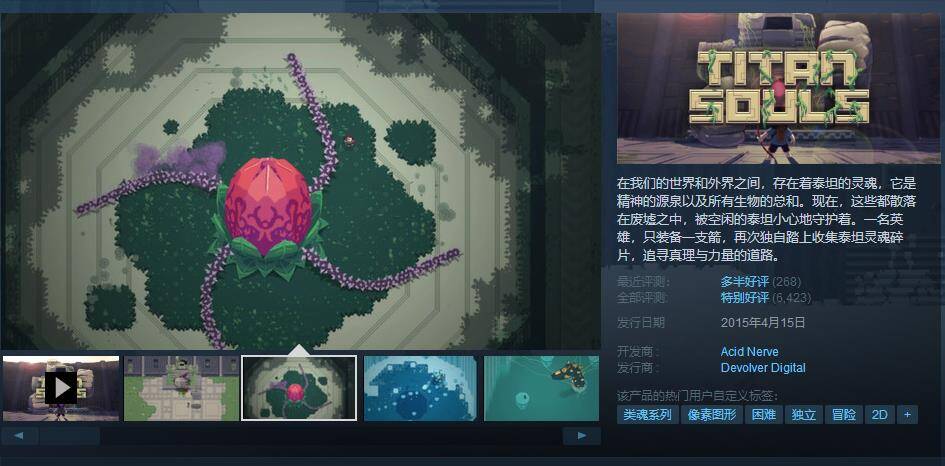 《泰坦之魂》是由Acid Nerve开发,并由Devolver Digital发行的一款像素风格独立动作游戏,于2015年4月14日正式发售,登陆PC、PS4和PSV平台。