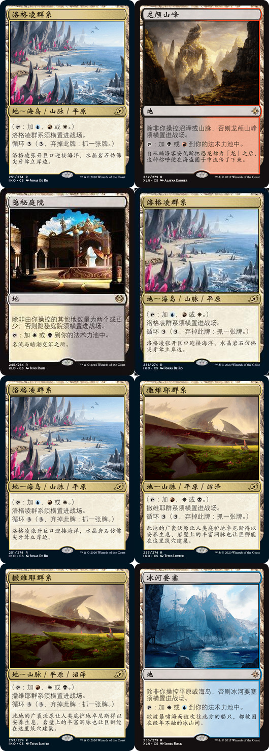 以上两张地的组合都能满足所有主牌二费互动的颜色需求。大家留费时留心一下。