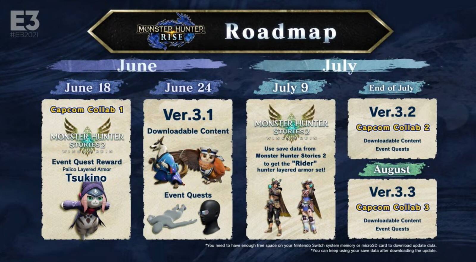 游戏的体验版将于6月25日推出,试玩版进度可以集成到7月份发售的正式版《怪物猎人物语2:毁灭之翼》当中。