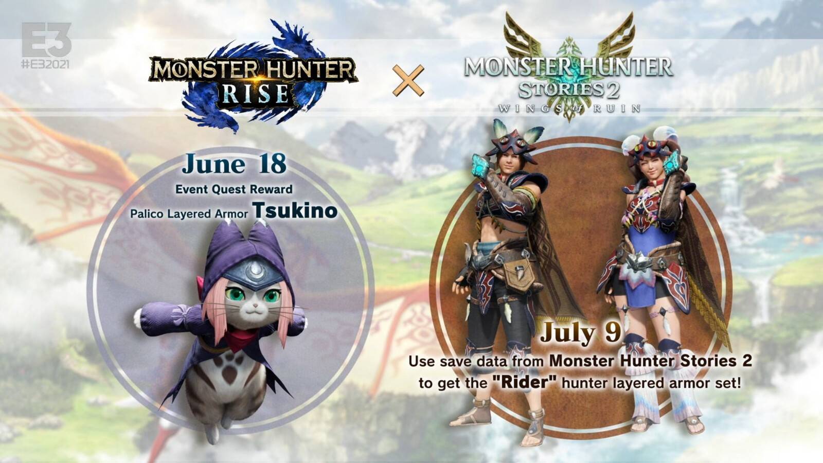 游戏还将与《怪物猎人:崛起》将于6月和7月进行一系列内容联动,除了已经确定会加入的《怪物猎人物语2:毁灭之翼》艾露猫和男女主角服装之外,还将在3.1版本《怪物猎人:崛起》追加新的任务、表情、动作、首领怪等内容。