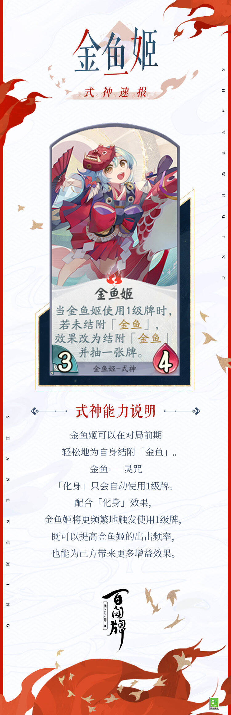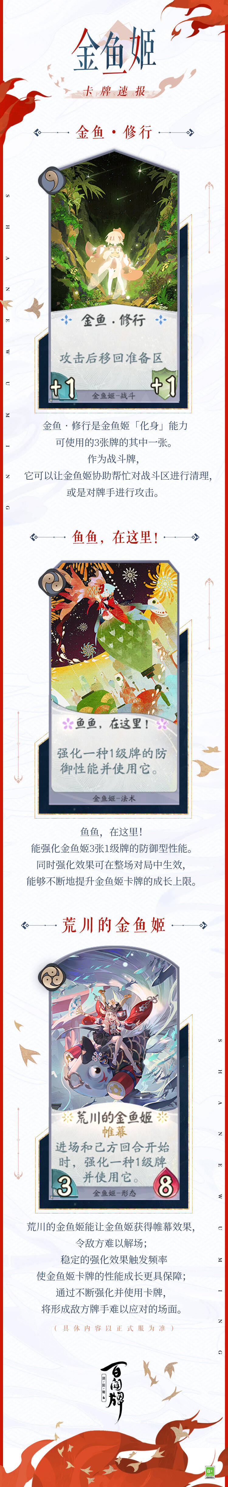 金鱼姬可以在对局中不断地增强自身的1勾玉牌,随着增强次数的增加,金鱼姬可以为己方带来的可观的增益效果,同时对于敌方的威胁性也将越来越大。更多式神与卡牌情报奉上↓↓