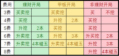 34费非理财三连大部分时候不要,需要看你的技能后面能否合理的利用好经济,想不出一个看上去合理的打法就不能要。理财和甲板的三连则是基本必要,由此引申出3费理财和甲板的对子应该锁到4费看一眼能否三连。现在版本理财和甲板三连一律建议6费碰四。