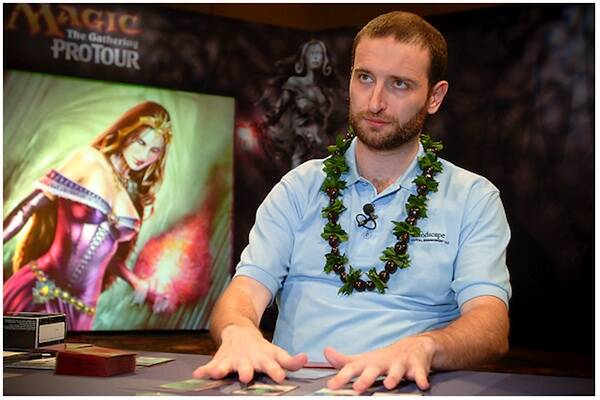 我记得我第一次冷静下来开始计算而不是让过我的回合,是在一场七年前的扩充赛制PTQ上,我的对手使用的是某种沾蓝控,我必须决定是否这回合拍出我的大炸弹,还是让过这回合。如果他现在有反击咒语,那我就糟了,但如果我让过到他——那岂不是多给他一个回合抓到康?