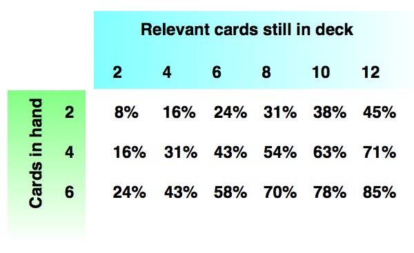 当然,这个表格不能基于他们牌库里还有多少张牌来回答你,因为我们基于的是开局到中期时抓牌造成的情况。