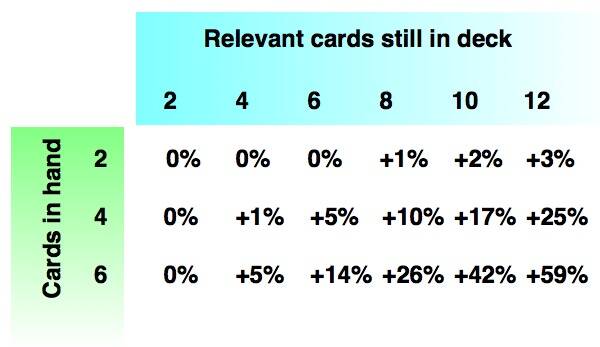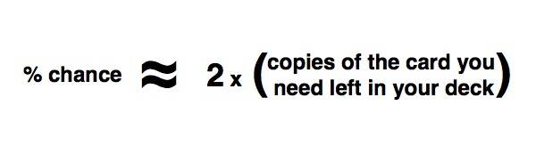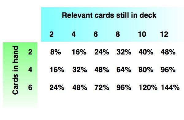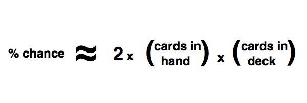 换一句话说,我们之前说的百分比约等于对手套牌中相关牌剩余的总数乘以他们的手牌数再乘以2.