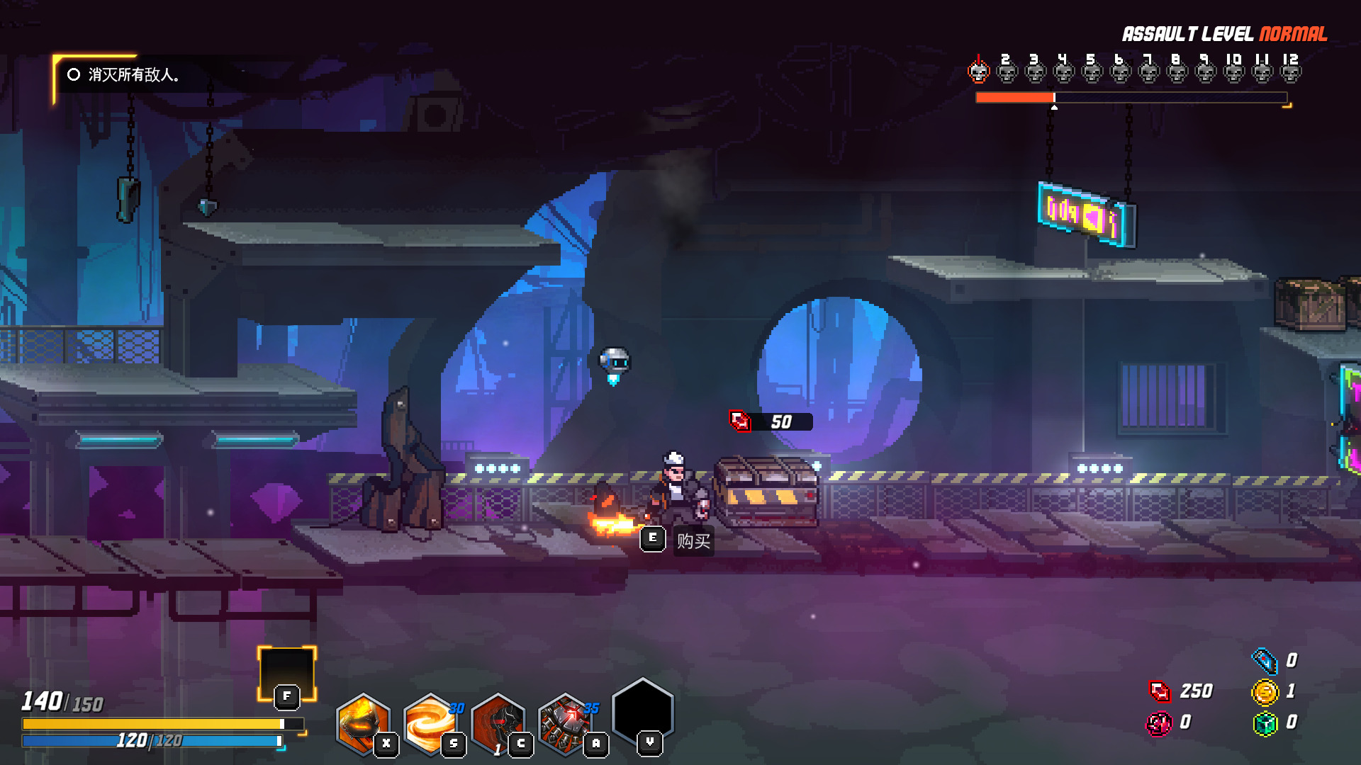 游戏的闯关方式很简单,一路向前,消灭所有变异怪物,在终点会有一个传送点,但此时你还不能直接离开,启动传送点需要时间,期间涌来的敌人也要一并消灭 。