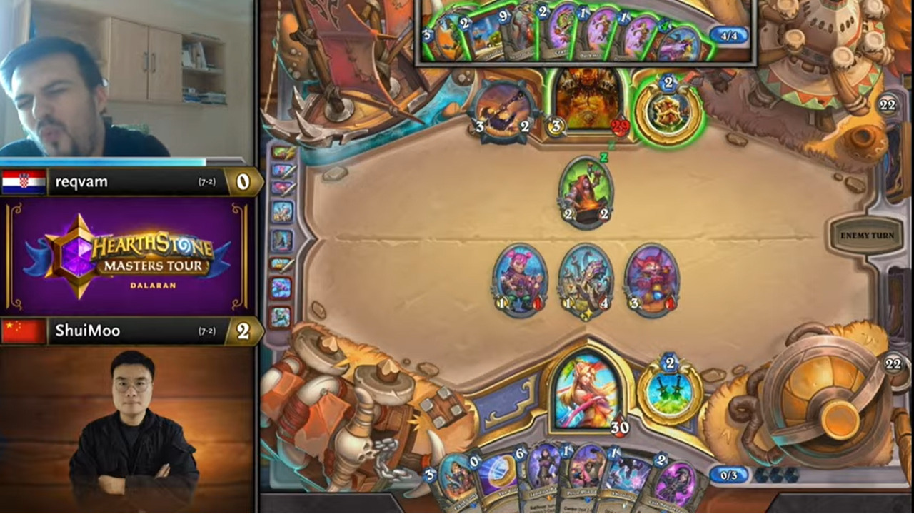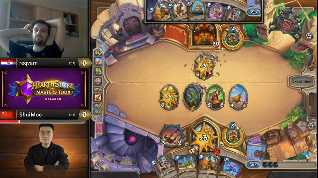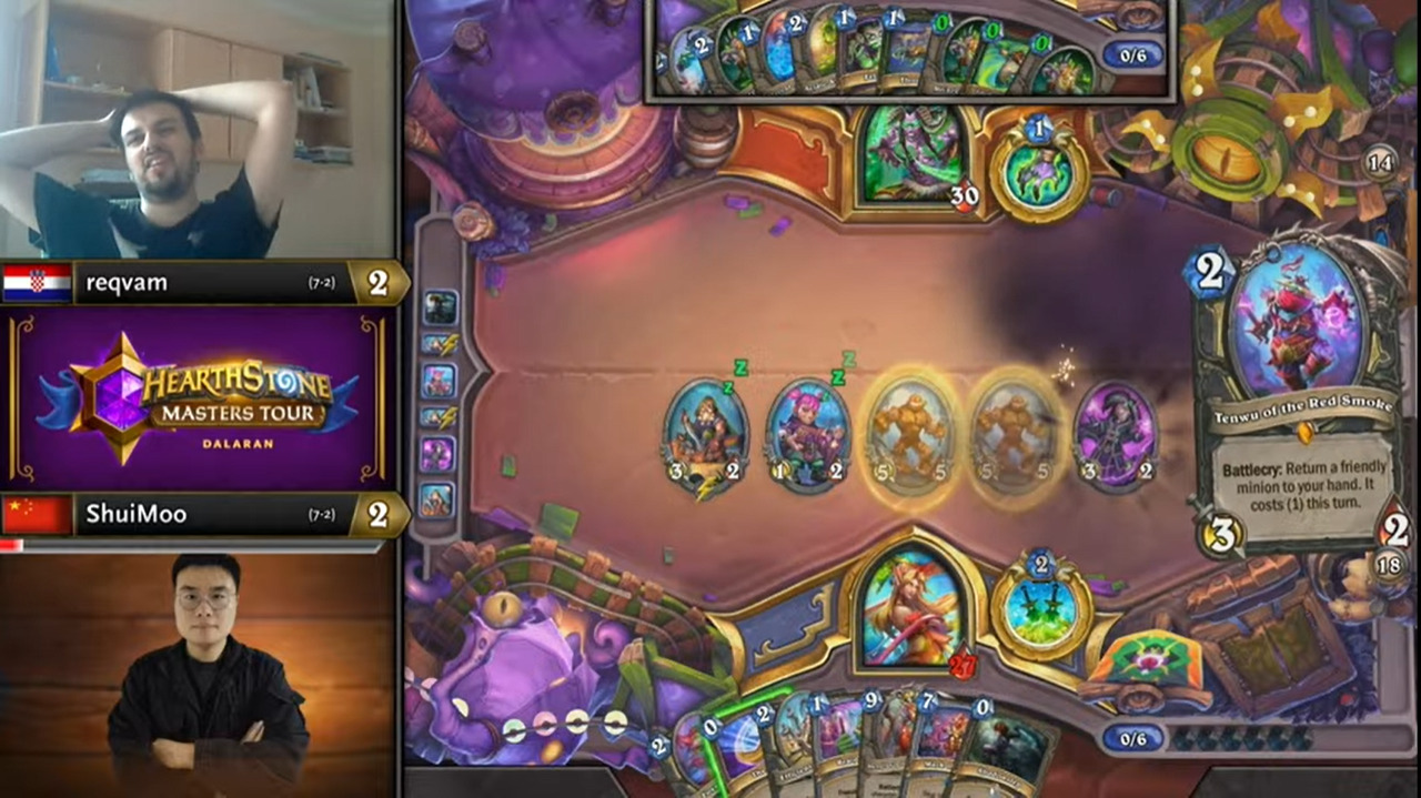 reqvam弹尽粮绝之际又抽到了原野人,又减费开刷,锁定胜局。水墨女巴又无奇迹,reqvam把比赛拖进决胜局!