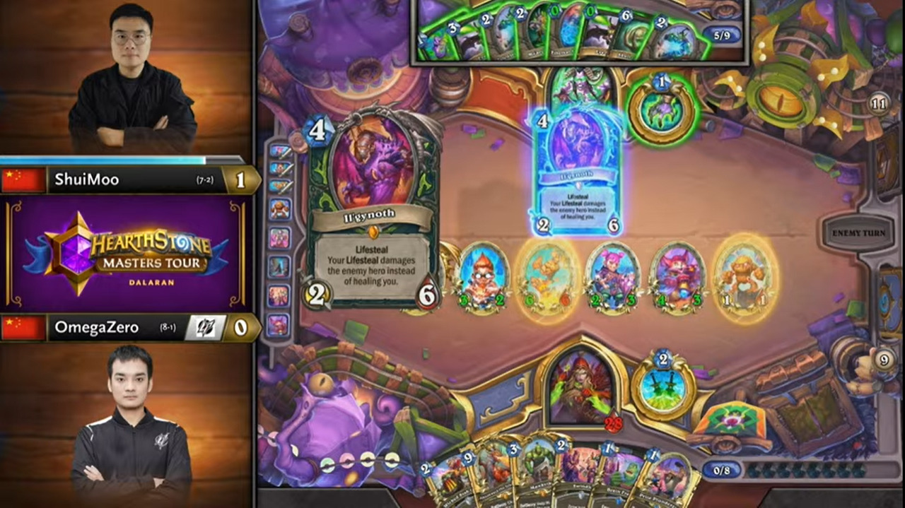 大师巡回赛达拉然站的决赛日即将开始。八强里的国服选手有OmegaZero、Leaoh和水墨烬千年三位,再加上少林寺的炉石科代表,中国炉石这次可以说是第一次占了巡回赛八强的半壁江山。