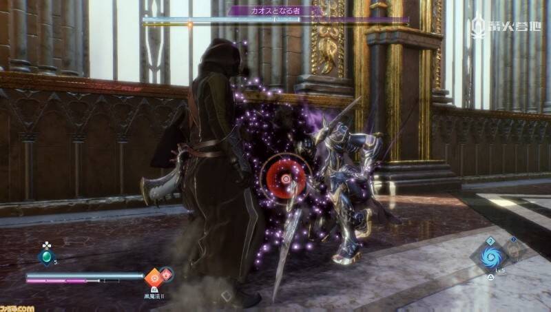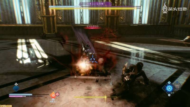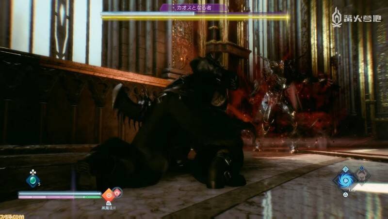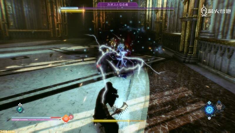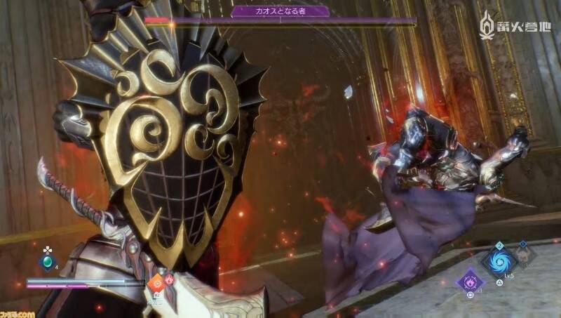 在混沌神殿最深处,也就是体验版的最后阶段,玩家会碰到名为「化为混沌之人」的 Boss,外形类似《FF 1》角色加兰德(《FF 1》反派)的盔甲男。在这场 Boss 战中,玩家如果只是打中几下是无法打出僵直的。而且,就算玩家成功使用灵魂圣盾,Boss 也几乎不会露出破绽,需要玩家抓住 Boss 攻击的间隙进行反击。