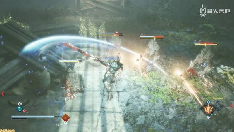 按下 R2 按钮之后,玩家就能消耗 MP 使用正在设置中的技能。这些不愧是需要 MP 的技能,使用之后就能大幅度削减敌人的 HP 和 Break 槽,其中还有能将敌人大范围吹飞的技能。