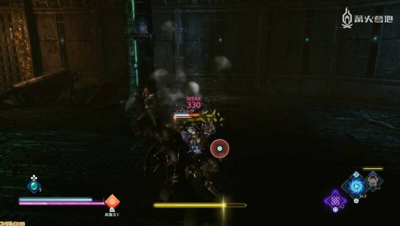 敌人也有 Break 槽这一设定,当 Break 槽归零之后(Break 状态),靠近敌人按下 ○ 按钮,便能使用灵魂爆发技能对它们使出最后一击。灵魂爆发会无视 HP 剩余量秒杀敌人,而且杰克还会回复 MP 并增加 MP 上限。使用灵魂圣盾和灵魂爆发增加最大 MP 并补给 MP 的话,就能使用动作技能(详细下文会提到)让战斗变得更有优势。