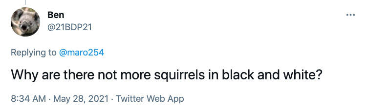 问:为什么没有更多的白和黑色松鼠呢?