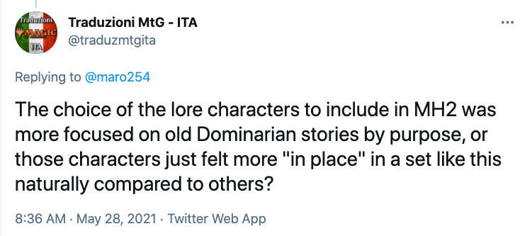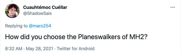 问:你们是何时决定将一个从来没有卡牌的老角色放到 摩登新篇的系列里,而不是指挥官的系列里呢?