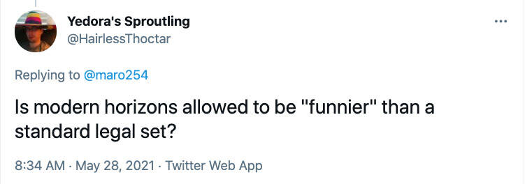 在我开始回答问题之前还有一件事。 通常我会自己回答问题,不过我今天有个特别来宾来帮我回答一些问题—万智牌的设计总经理Aaron Forsythe,同时也是我的老板和摩登新篇2的系列设计带领。 在回答问题时我会让你们知道的。