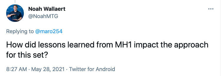 Aaron:原版的摩登新篇做了很多正确的东西,而我们也想要确保我们保留了这些正确的要素。 我们甚至选择了许多同样的人,像是博学士Ethan Fleisher是两个系列的洞察设计带领、卡牌专家Allison Steele以及摩登赛制大师DanMusser。 我们想要保留所有的怀旧要素、疯狂设计、超棒的轮抽环境,以及如同第一个系列对于摩登的影响。 一些其他的例子: