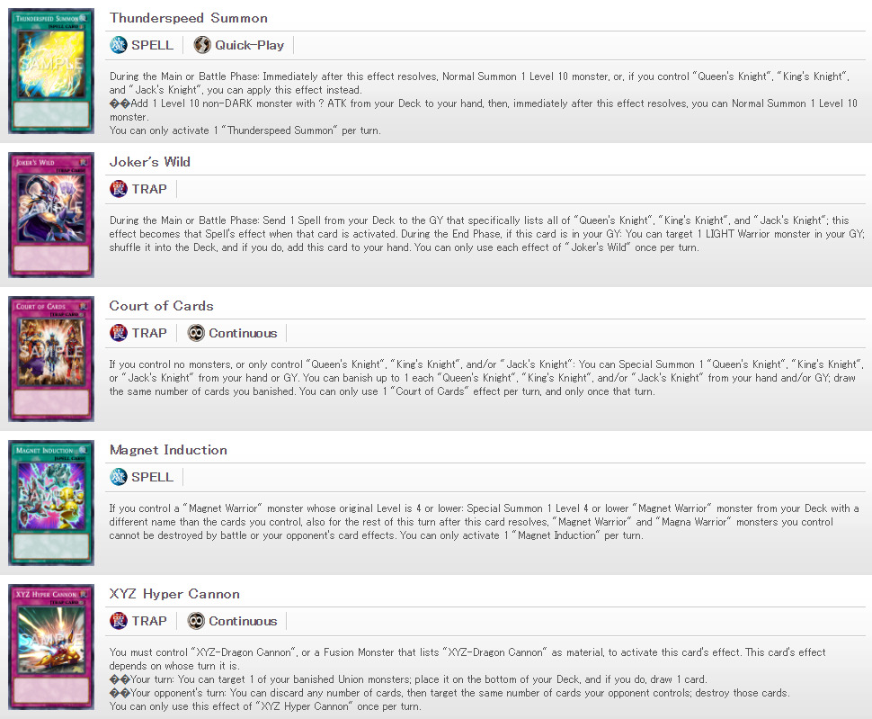 主要阶段以及战斗阶段:从卡组把1张有「王后骑士」「国王骑士」以及「卫兵骑士」的卡名记述的魔法卡送去墓地;这个效果变成和那张卡魔法卡发动时的效果相同。结束阶段,这张卡在自己墓地存在的场合:可以以自己墓地的1只战士族·光属性怪兽为对象;那只怪兽回到卡组,这张卡加入手卡。“Joker's Wild”的每个效果1回合各能使用1次。