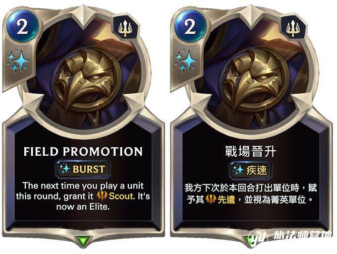 看效果就知道纯鸡肋,两张手牌换一个先遣效果,在皮祖这种地区还好,在德邦这种鬼地方,没多少资源挥霍的,没过牌,不加身材。这卡基本没有特别多的发挥空间,除非拳头执意撮合盖伦和奎因,让先遣配合精英。