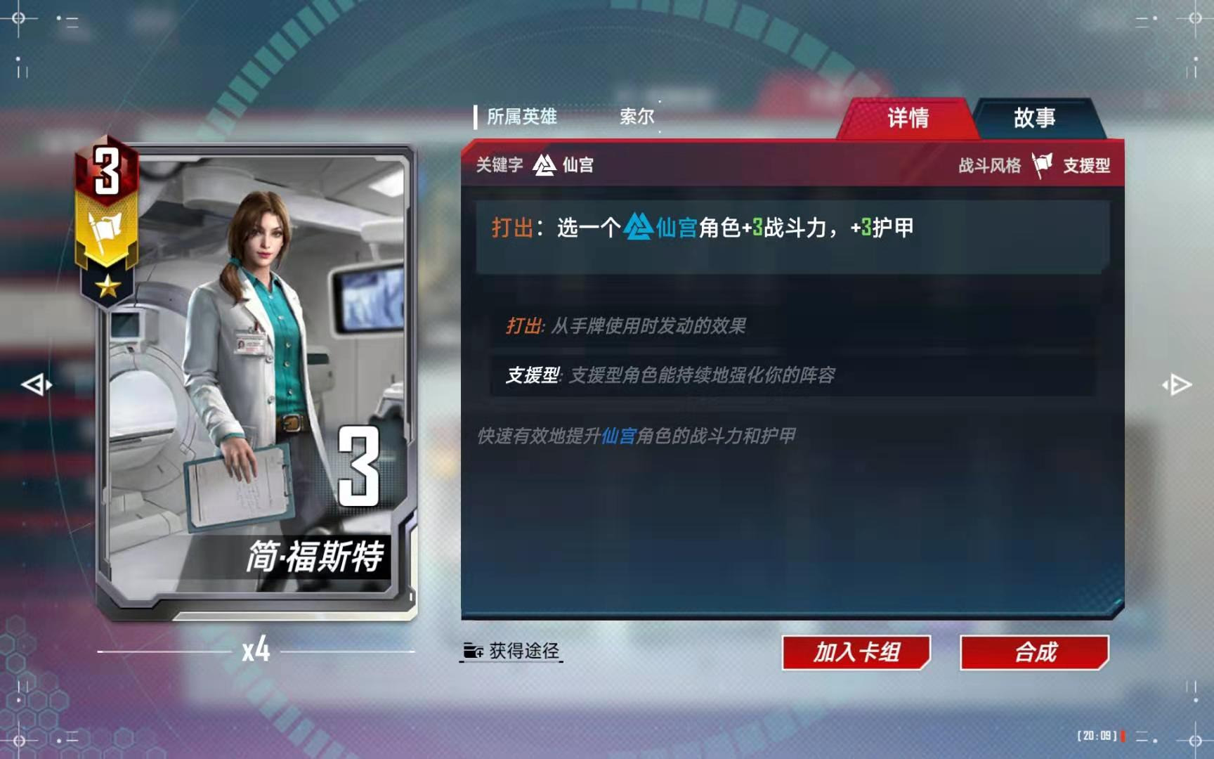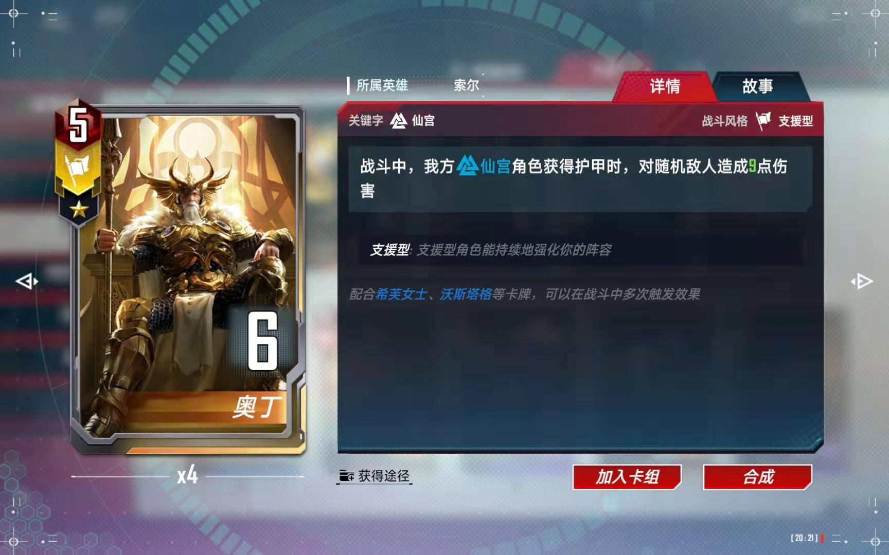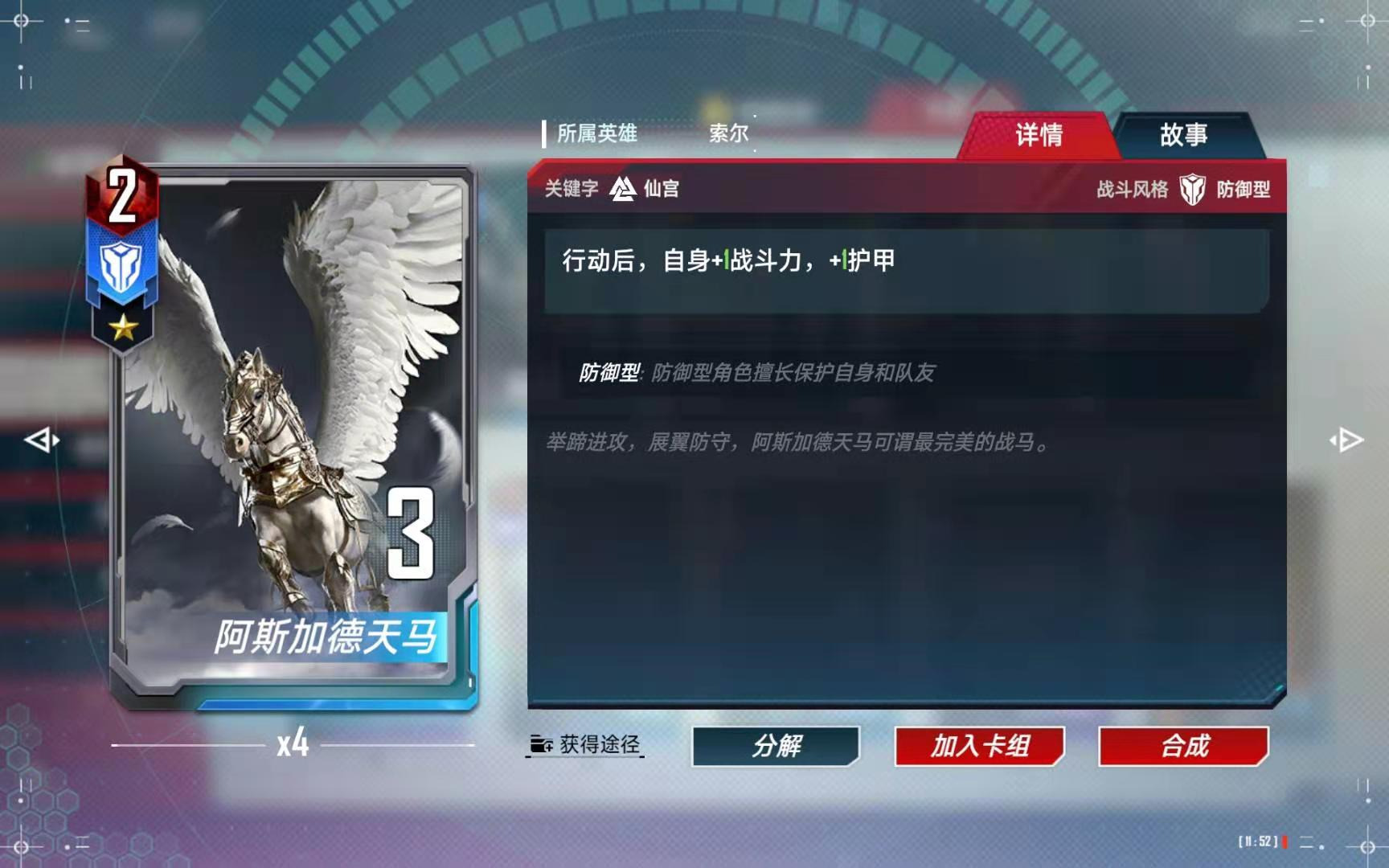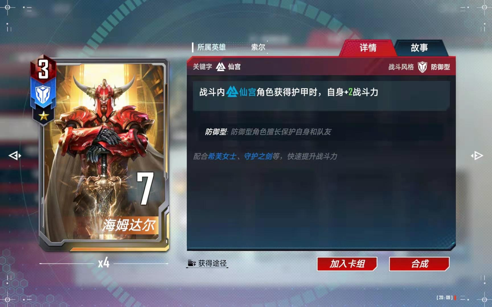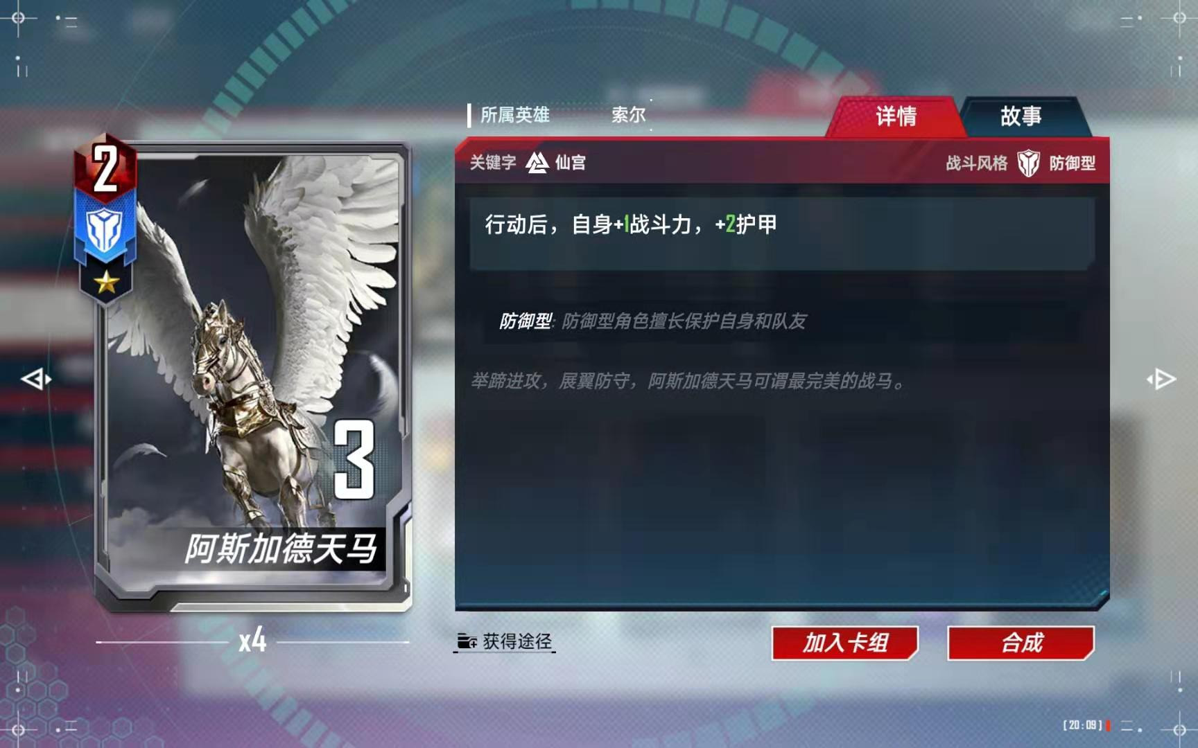 原技能:战斗内仙宫角色获得护甲时,自身+2/4/8战斗力;