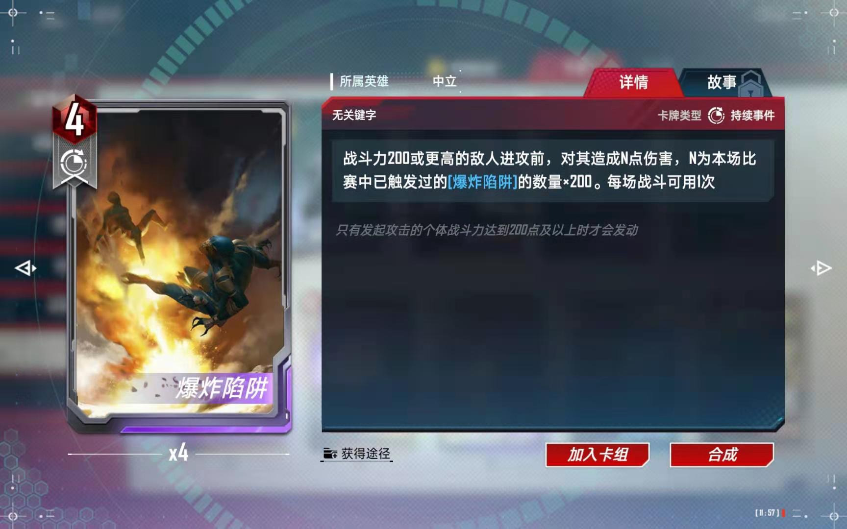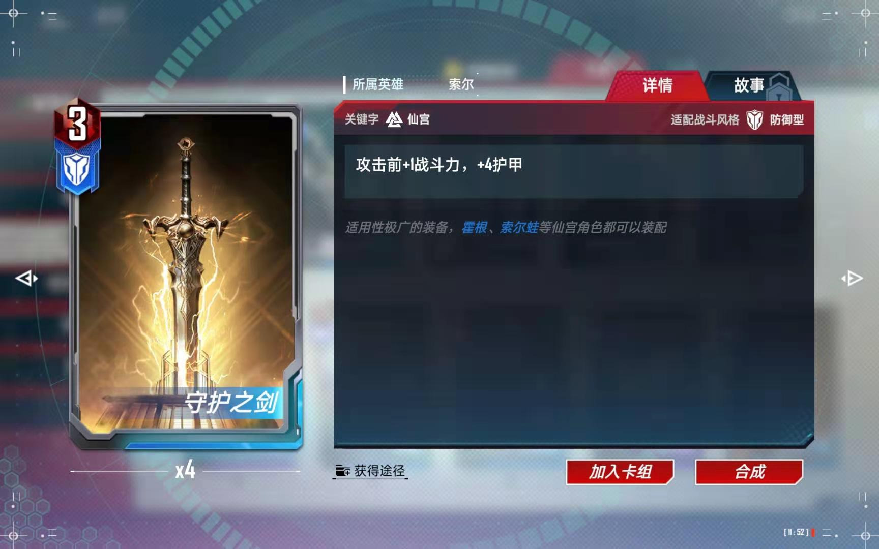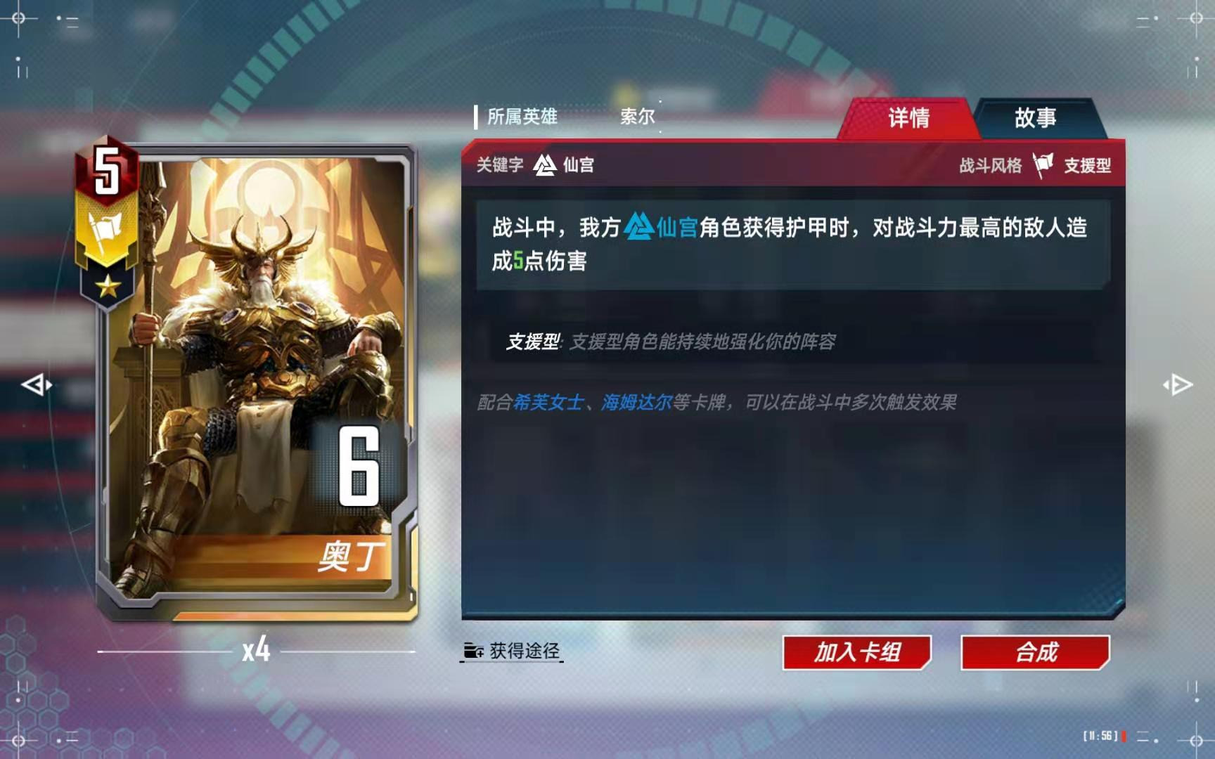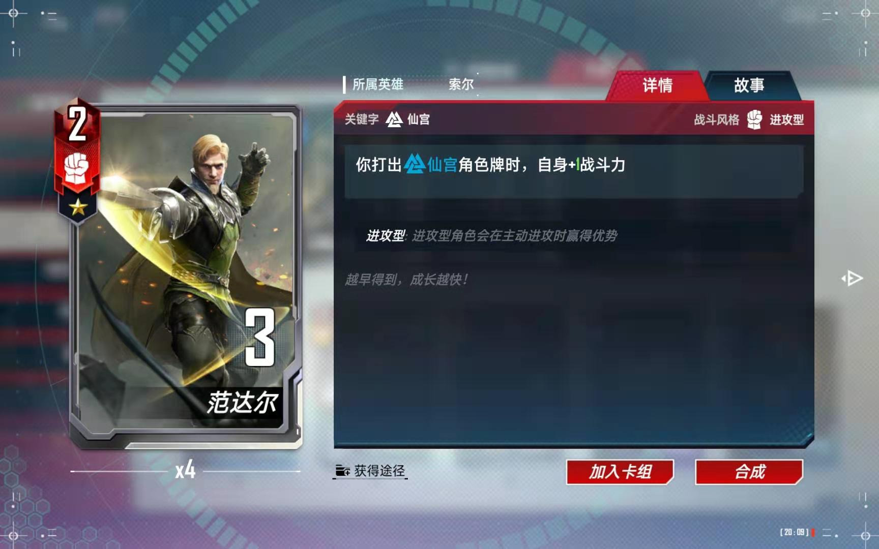 这张卡的改动还是很有意思的,关于这个“资格”,漫画中应该就是雷神、马面雷神、索尔娃、环视、美队、还有美队女朋友“简福斯特”这三个有资格了吧,简是二费,忽略她。在本游戏中,这张武器的意思应该是雷神、索尔娃、美队佩戴这个武器每回合都会成长6点护甲,改动还是挺有意思的。