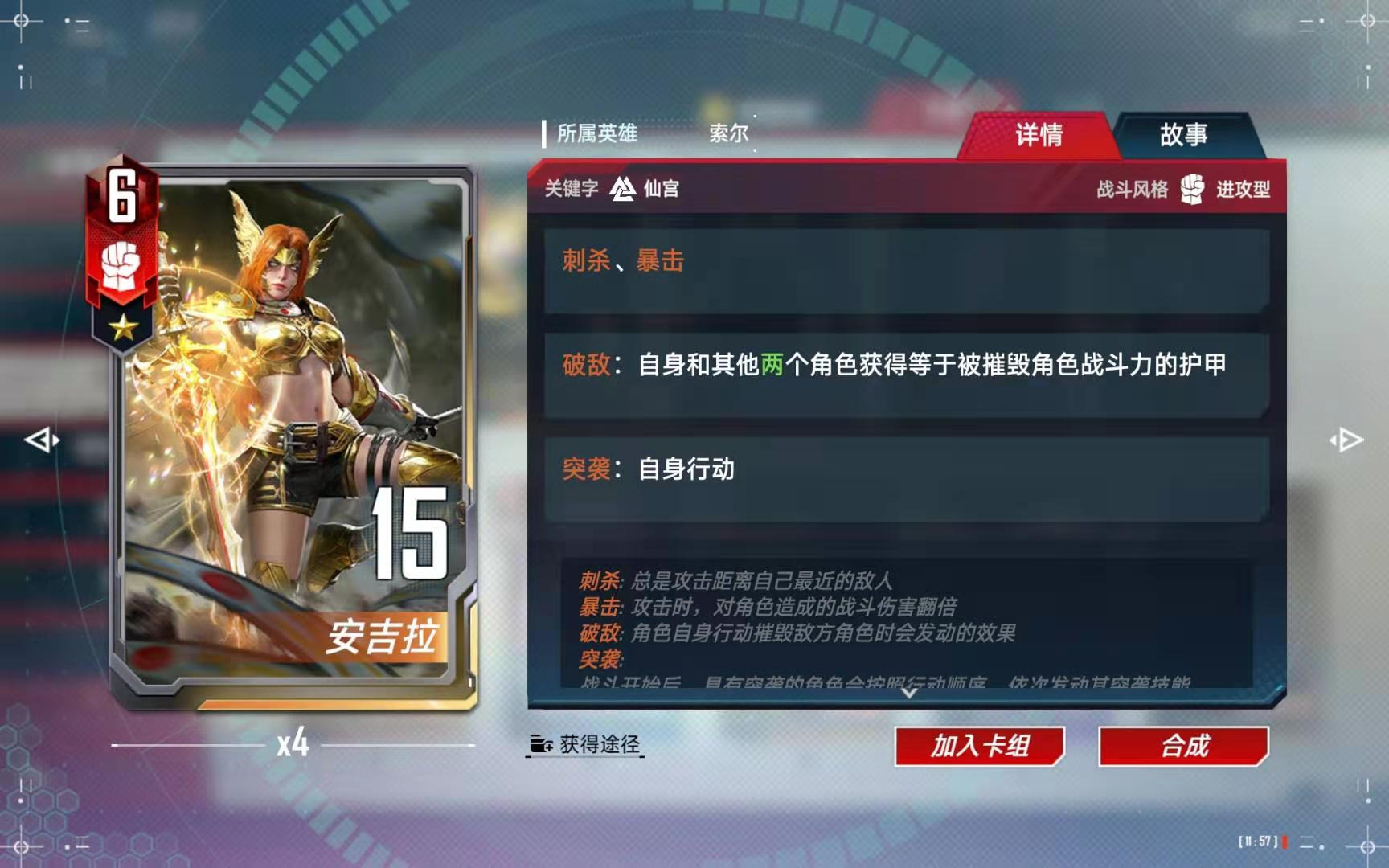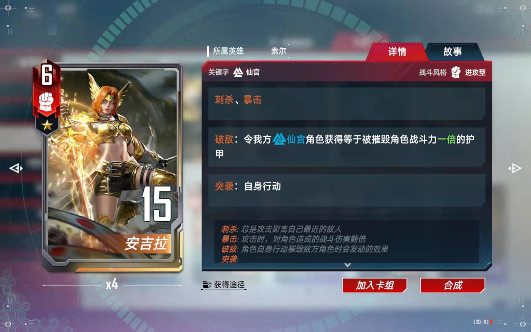 原技能:破敌,令所有仙宫角色获得等同于被摧毁角色战斗力1/2/4倍的护甲;