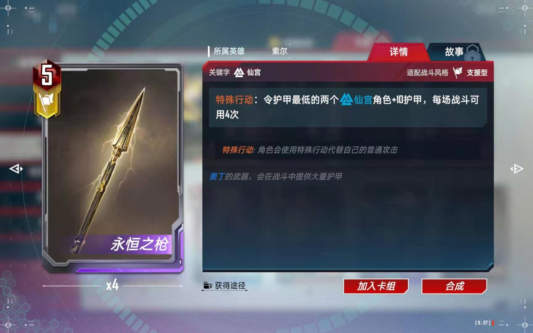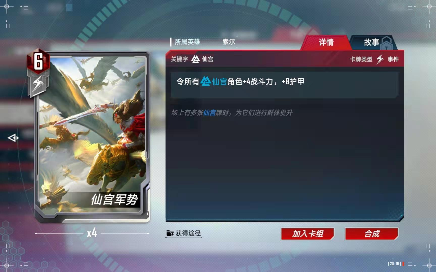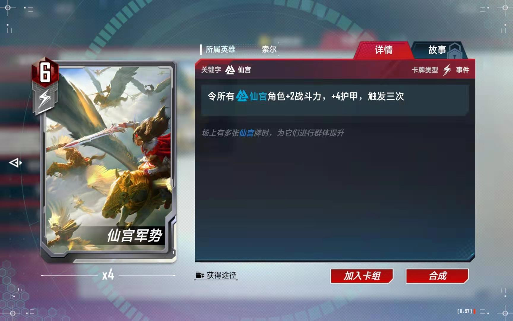 修改后:战斗内仙宫角色获得护甲时,自身+2/4/8战斗力;