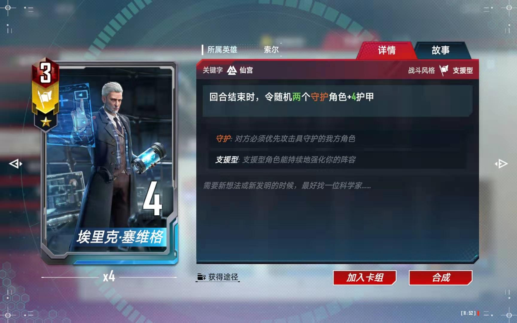 原技能:独行,本场战斗中没有一个角色被摧毁,自身永久+1/2/4战斗力;