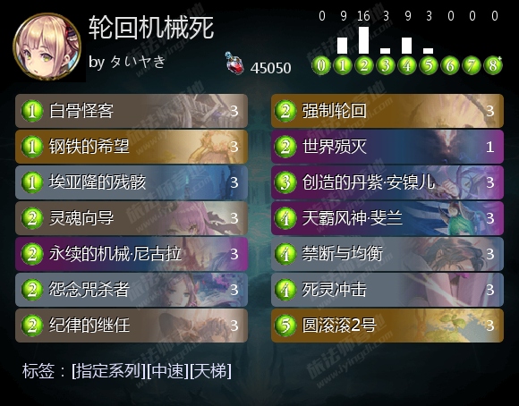 这套牌还投入了强制轮回,以便复活被对手破坏的安镍儿,持续施压。此外,圆滚滚2号可以稳定拉出牌堆中的安镍儿,并通过自身的守护和自保能力保护后者。