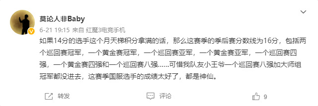 今年季后赛规则也改了回去,参赛资格全部由积分产生,不再分一半名额给战队联赛,让这次季后赛阵容的构成显得更为丰富,3人在战队联赛体制内,3人离开了体制,还有两位还算是新人。国服这是真正做到了让体制内外的玩家都有机会冲击全球总冠军,海外社区不知道得多羡慕(巡回赛5胜6胜也算分,这也得羡慕)。